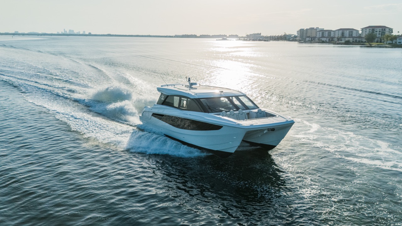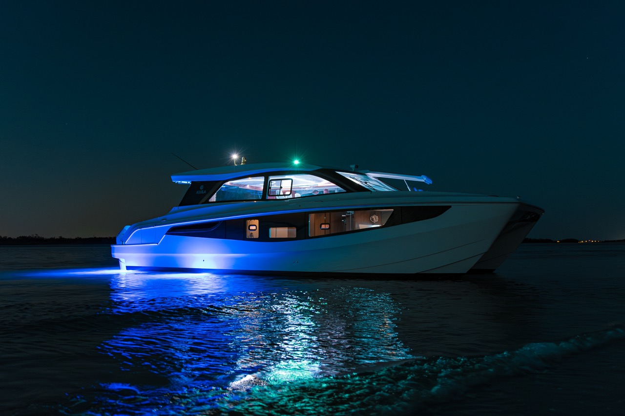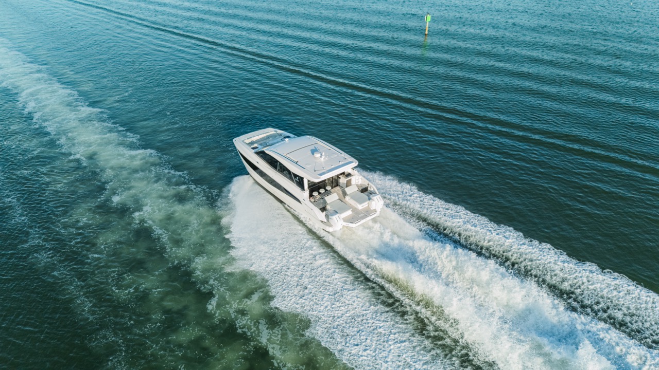 Available with powerful outboard engines or efficient inboard propulsion, the 46 Coupe benefits from double stepped hulls and the Aquila Hydro Glide® Foil System, delivering a smooth ride, superior stability, and class-leading efficiency on every journey.