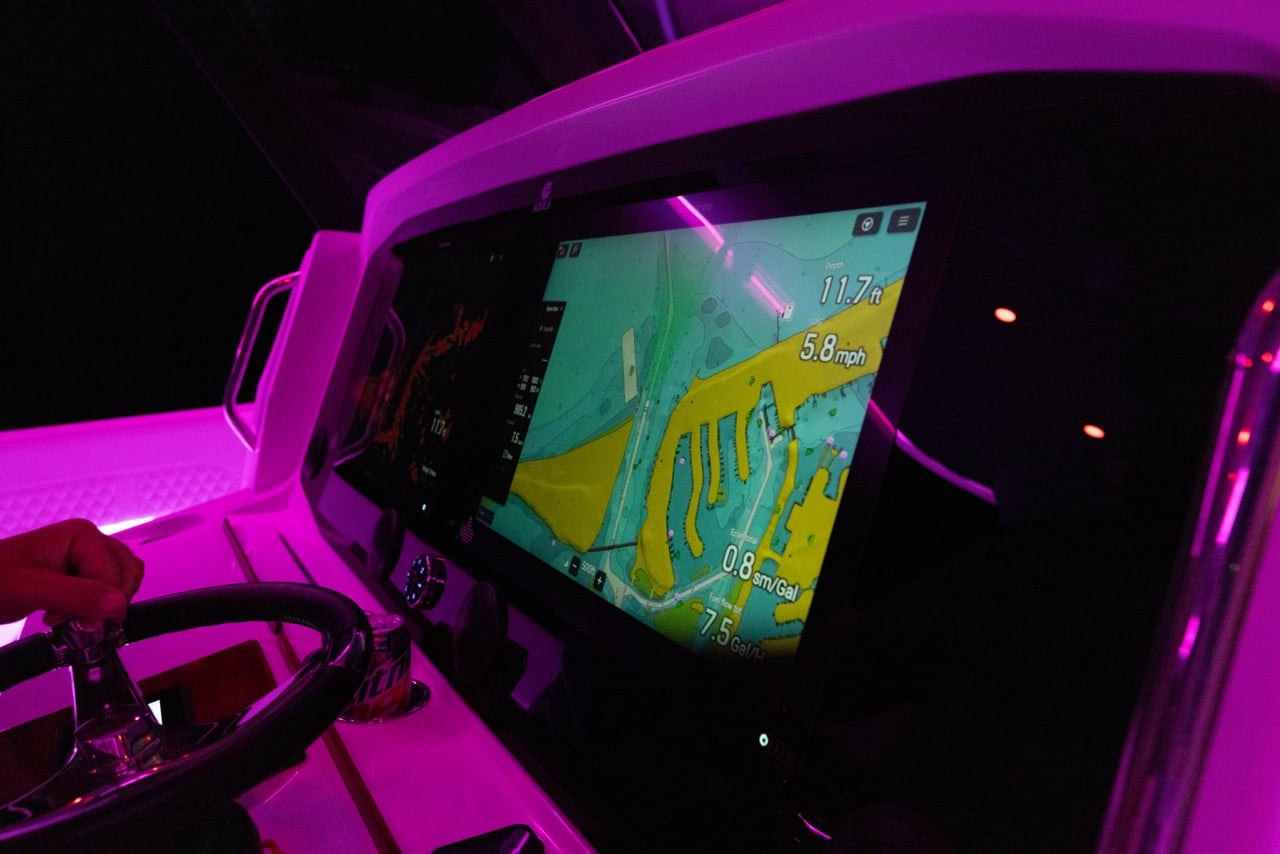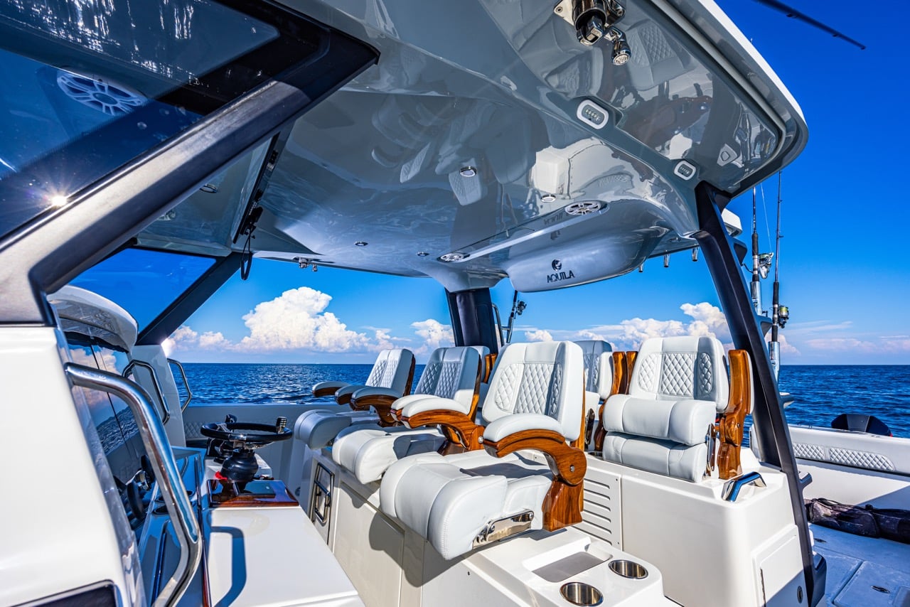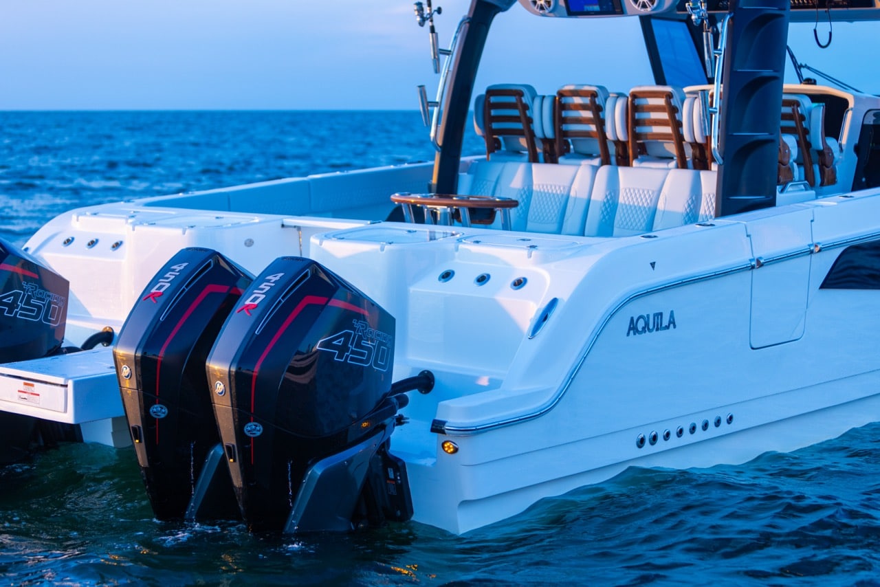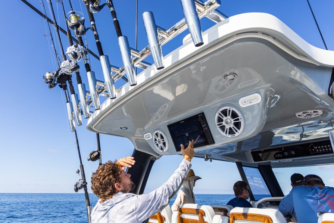 From bow to stern, every detail supports serious fishing: 360-degree walk-around access, twin 42-gallon livewells, and over 700 gallons of fishbox capacity. When the rods are down, the expansive deck transforms into a luxury cruising space with seating for up to 17 people and an optional summer kitchen for effortless entertaining.