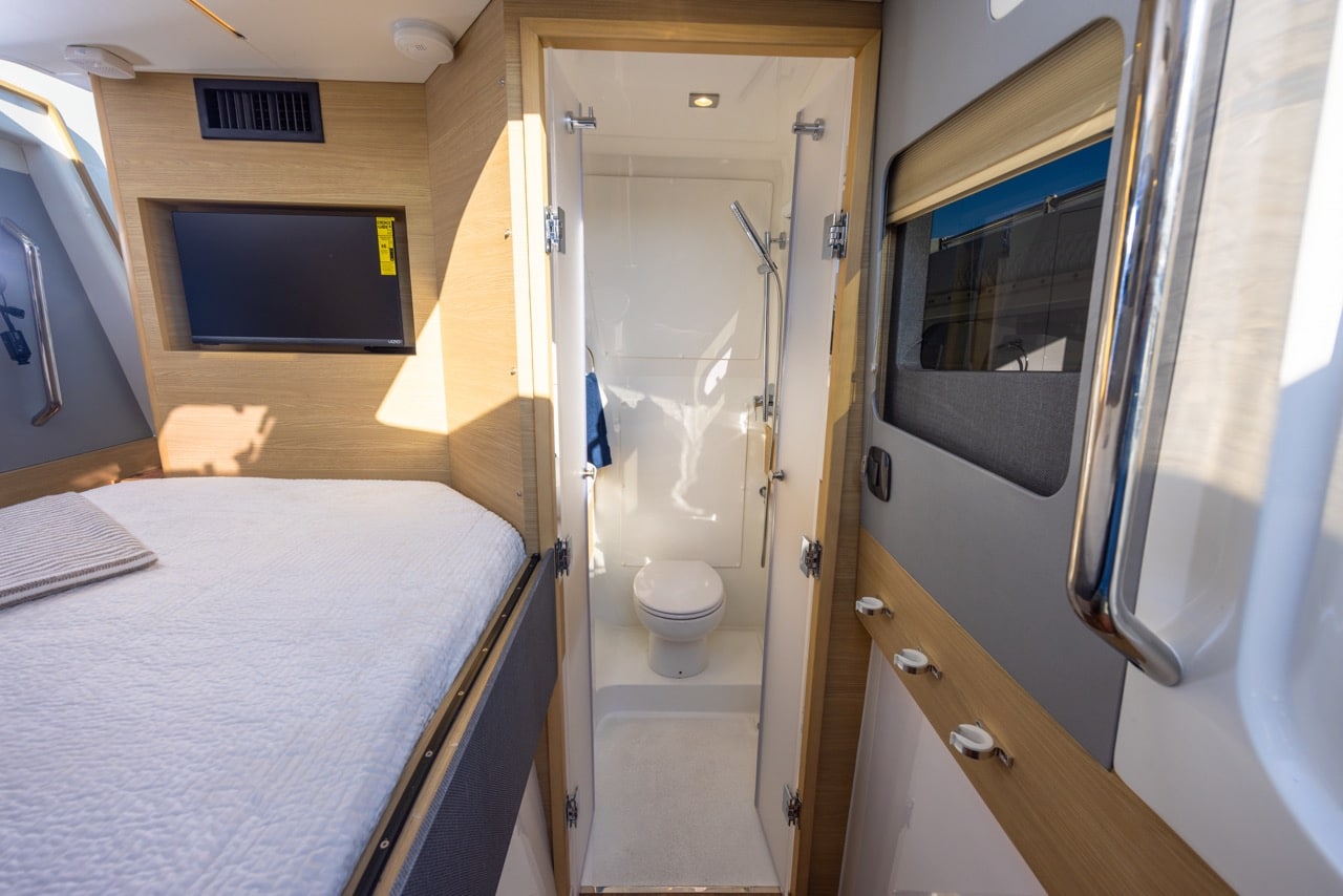 The 47 Molokai is as comfortable as it is capable. Its spacious cabin features a queen-sized island berth, full head with shower, and premium finishes throughout.