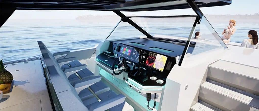 No interior, espera-se que o Aquila 45 Sport ofereça uma cabine principal com cama king-size, casa de banho privativa e a possibilidade de instalar um sistema de baterias de lítio para conforto autónomo. A posição de comando completa a experiência, com quatro assentos ergonómicos, grandes ecrãs embutidos, comandos intuitivos e integração total com smartphones para controlo de todos os sistemas a bordo.