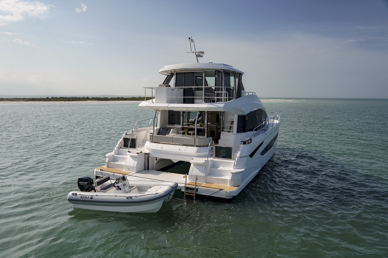 Equipado com sistemas de navegação inteligentes e certificado para Categoria A oceânica, o Aquila 54 oferece confiança para explorar águas distantes, mantendo conforto e luxo a cada momento.