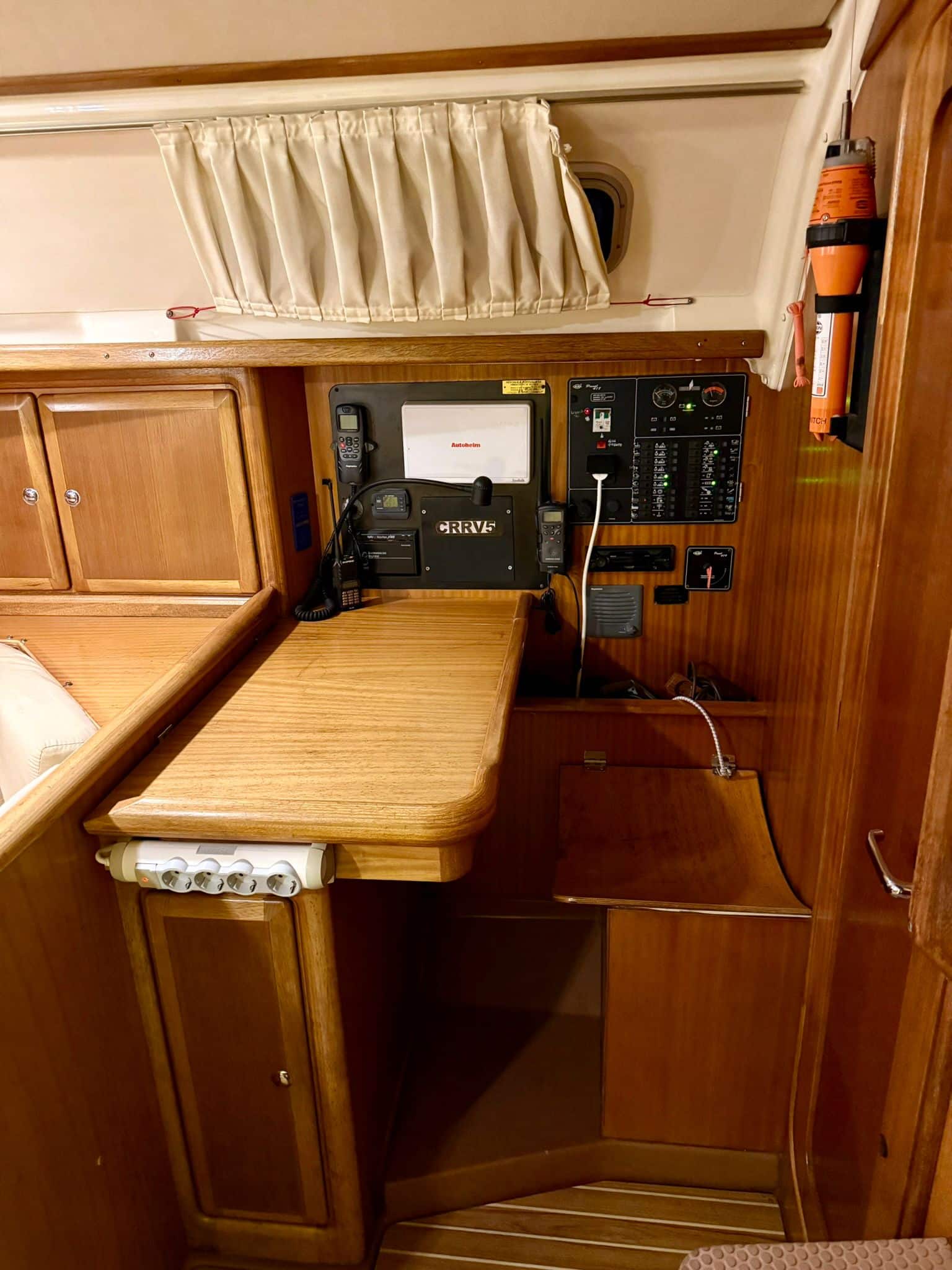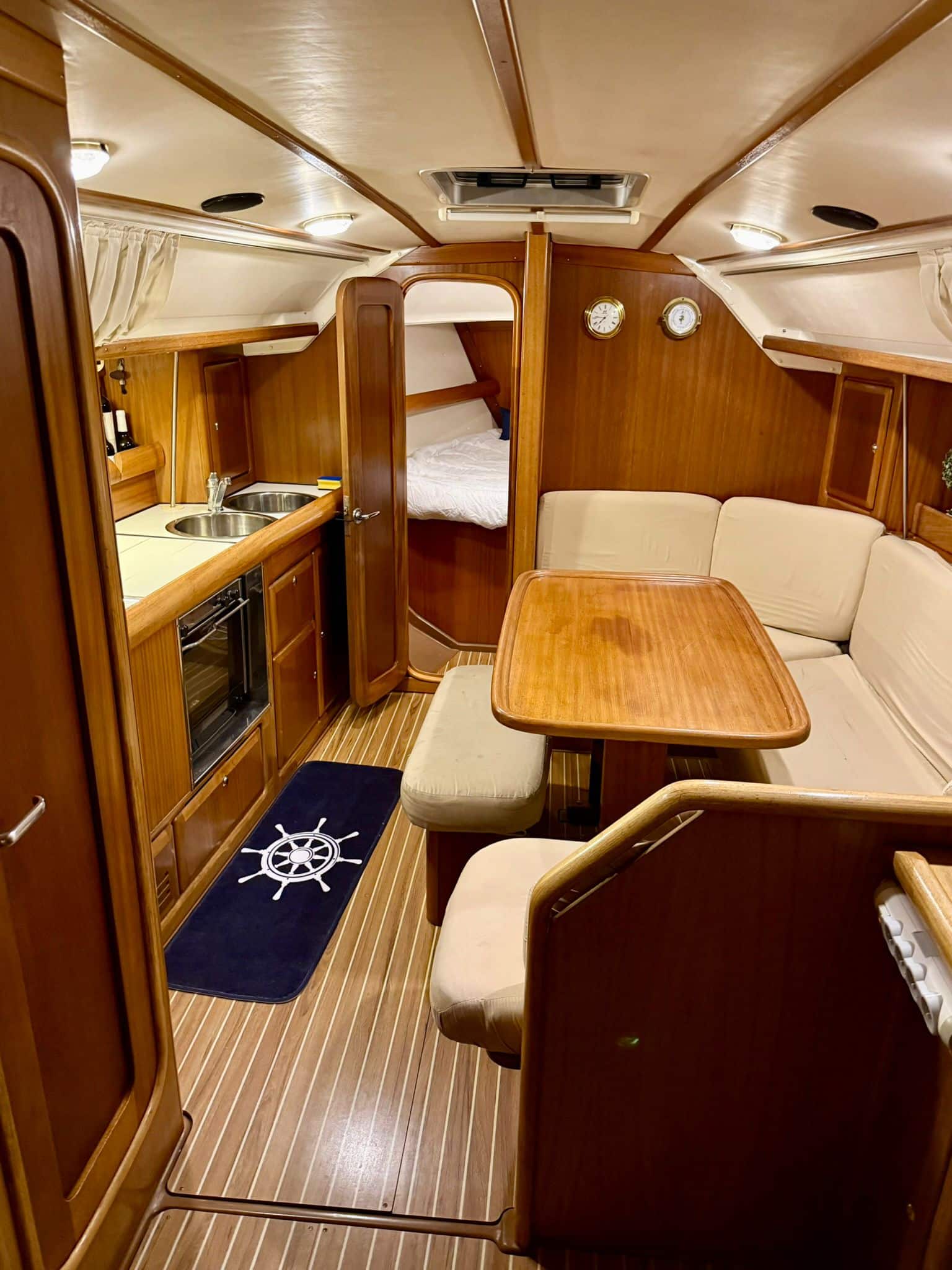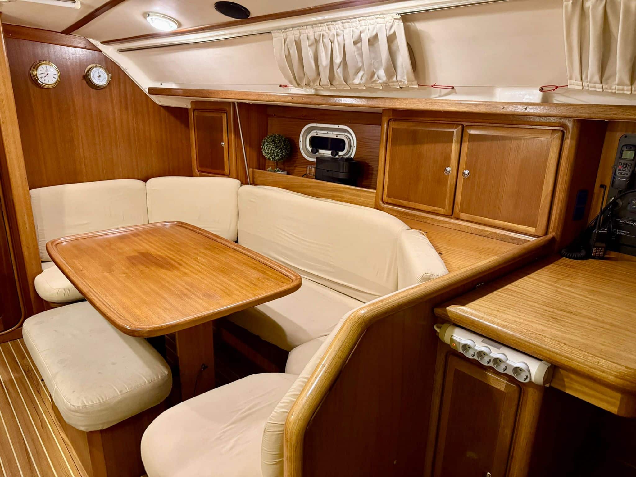 Impulsionado por um fiável motor Volvo Penta MD2030 (29 CV), foi concebido para uma navegação tranquila, com vela grande e genoa de enrolar, tendo todos os cabos reenviados para o poço. Está totalmente equipado para navegação com Radar, Piloto Automático e GPS, pronto para aventuras costeiras imediatas.