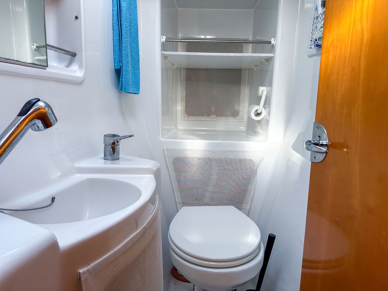 Suba a bordo deste Fountaine Pajot Highland 35 de 2006, um catamarã usado que combina na perfeição conforto, desempenho e estilo. Com três cabines, uma casa de banho, uma cozinha funcional e um salão luminoso e acolhedor, é ideal tanto para cruzeiros em família como para momentos de convívio com amigos. Os motores duplos Volvo D2-75, substituídos em 2024, garantem desempenho fiável, com velocidade de cruzeiro de 11 nós e máxima de 17 nós, enquanto os tanques de combustível e água permitem aventuras prolongadas.