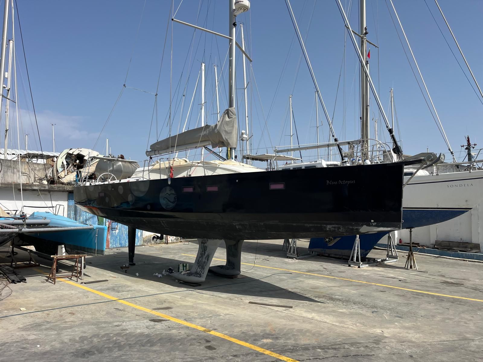 2013 RM 1260 “Blue Octopus” — um raro cruzeiro de performance de Marc Lombard, que combina verdadeira capacidade oceânica com a velocidade e o prazer de um moderno racer-cruiser. Construído pela RM / Fora Marine (França) em contraplacado marítimo/epoxy, é leve, rígido e excecionalmente rápido. Embora construído em 2013, só foi lançado e comissionado em 2014. As quilhas duplas e o leme simples garantem uma navegação confiante e a vantagem prática de poder “secar” em segurança.