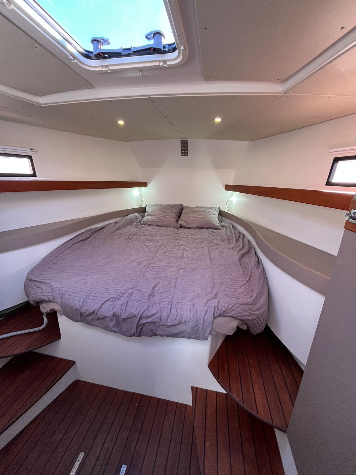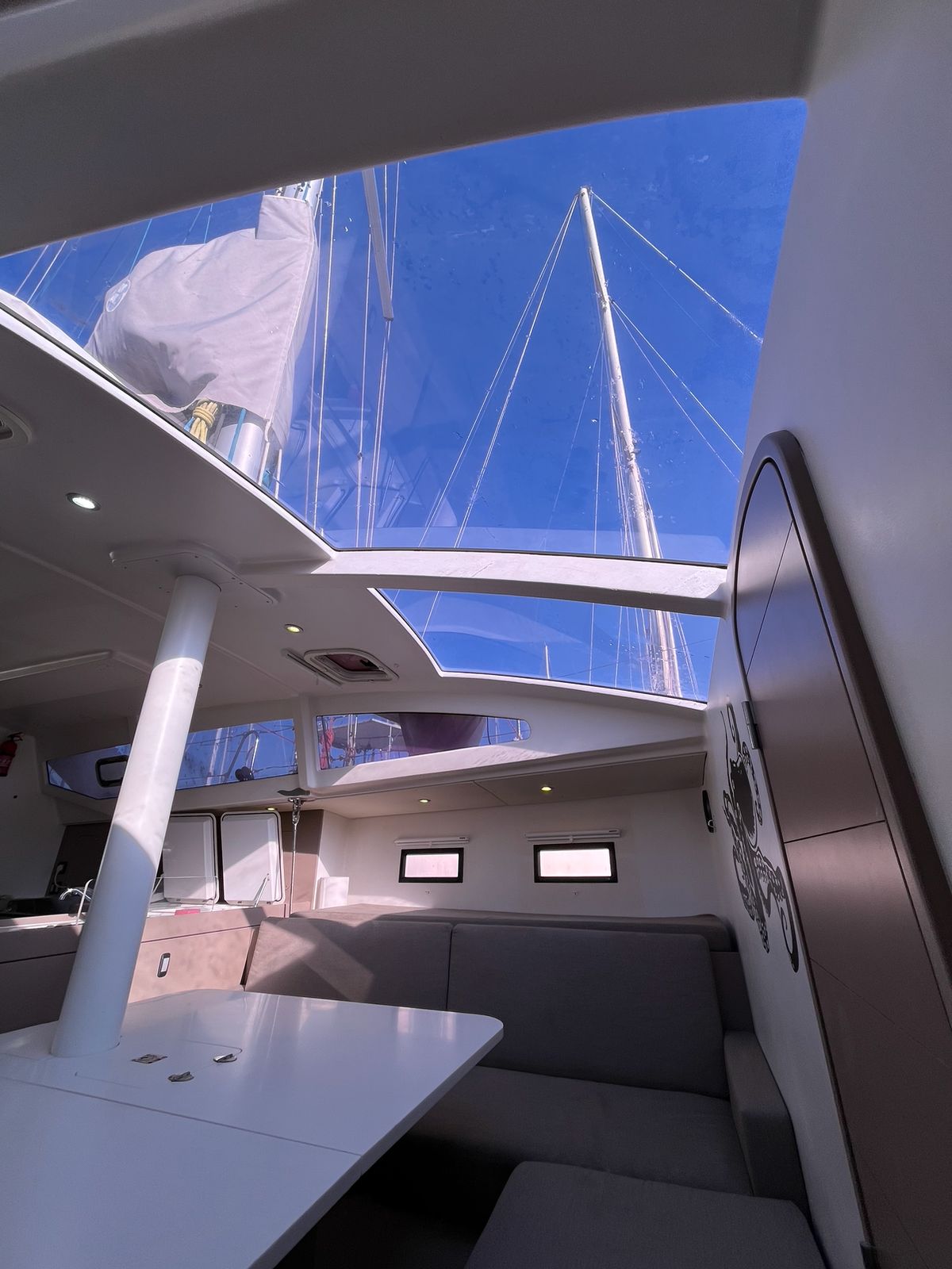Preparado para navegar rápido e fazer milhas, inclui um excelente conjunto de velas Ullman em Kevlar: grande square-top (48 m²) e genoa (45 m²), ambas de 2014, além de vela de temporal (25 m²), gennaker com enrolador (80 m²) e um impressionante Parasailor (140 m²) para descidas de vento fáceis e eficientes.
