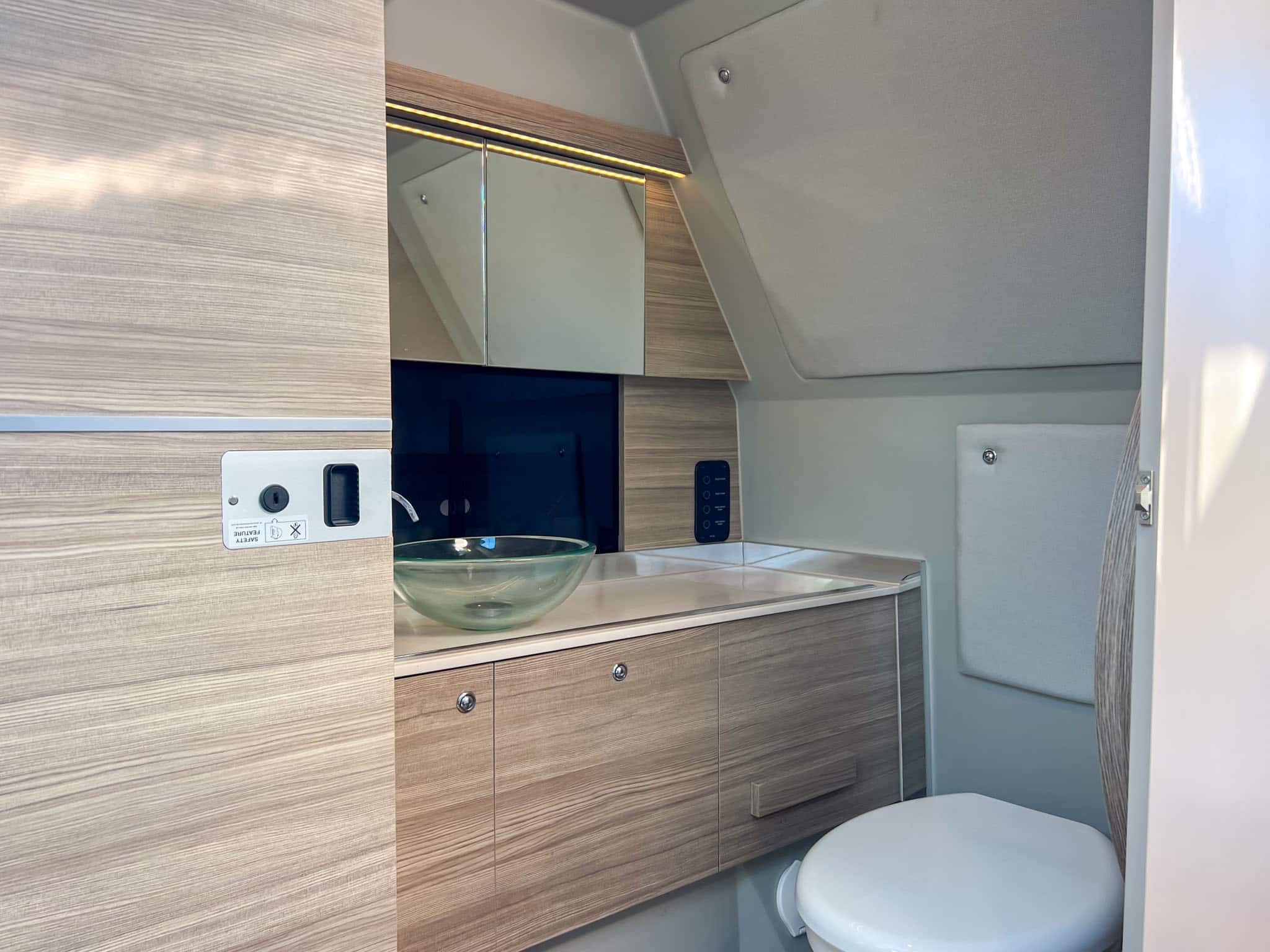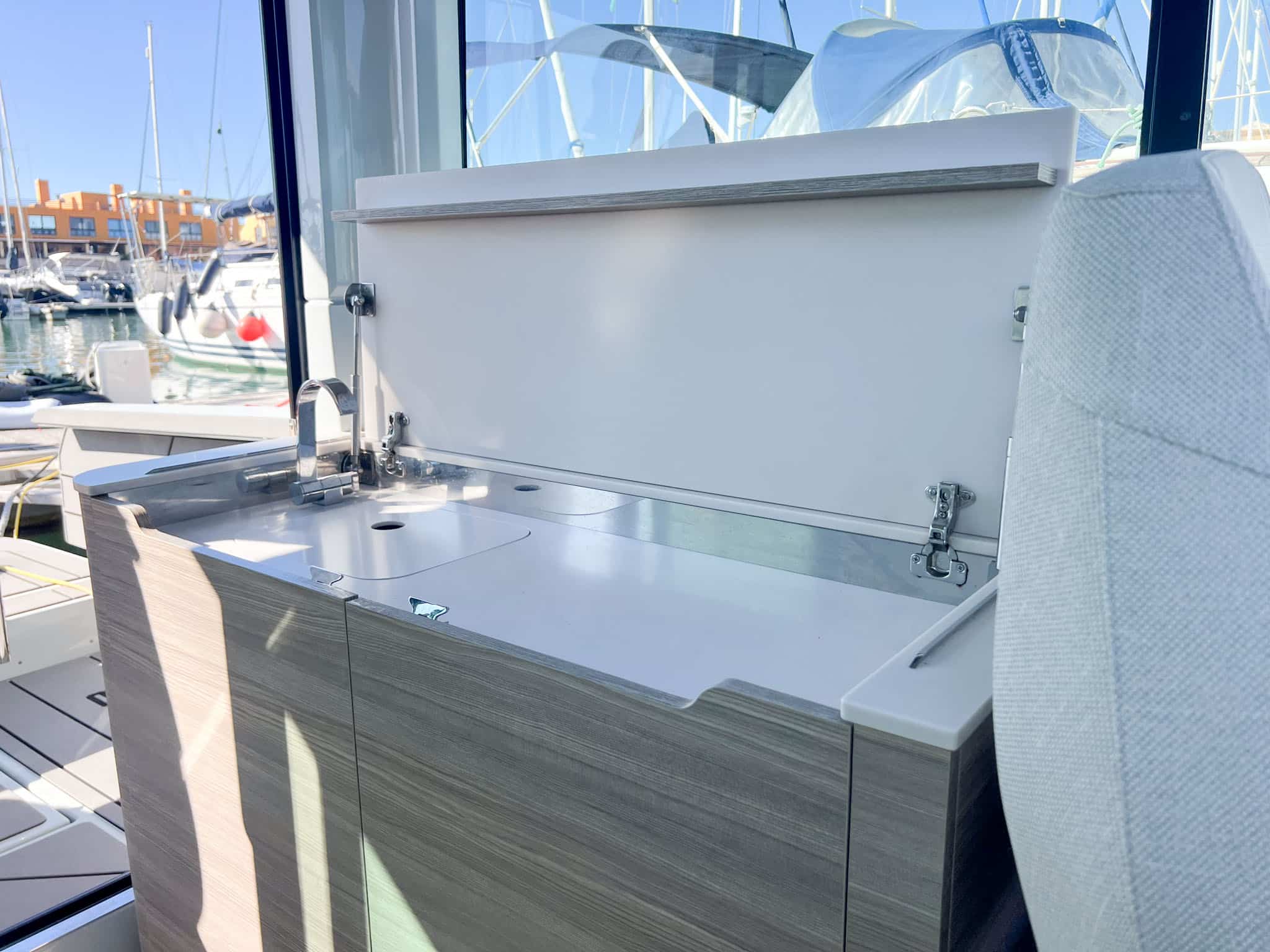 Entra no wheelhouse full-beam e o mundo lá fora desaparece. Recebe convidados no cockpit, expande as plataformas laterais numa esplanada flutuante, refugia-te na cabine de proa na ancoragem. Tudo flui. Tudo encaixa. Nada parece um compromisso.