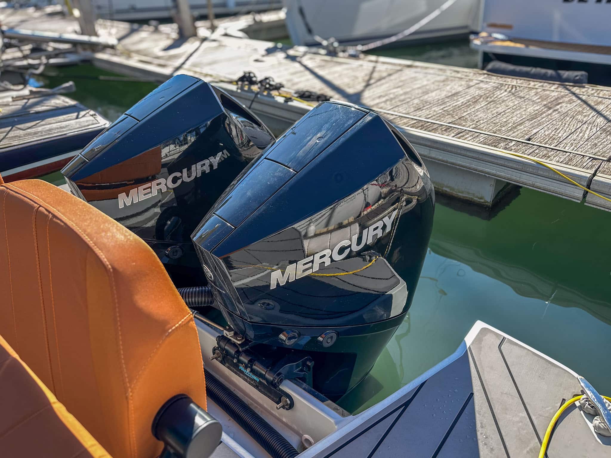 Os dois motores Mercury entregam uma propulsão explosiva, levando-te além dos 45 nós com uma confiança sem esforço. Mas por baixo dessa potência bruta esconde-se um casco twin-stepped infundido a vácuo, tão refinado que lê o mar como poesia. Calmo ou agitado, perto ou offshore — o GTC está sempre no seu elemento.
