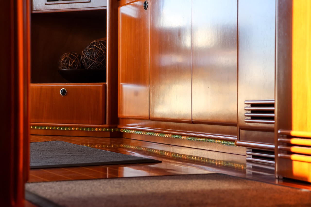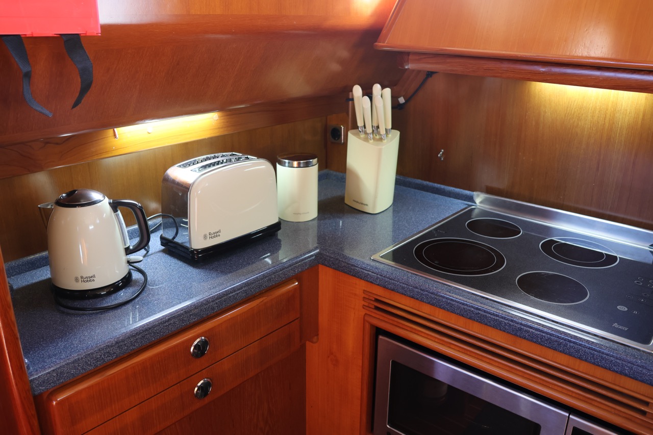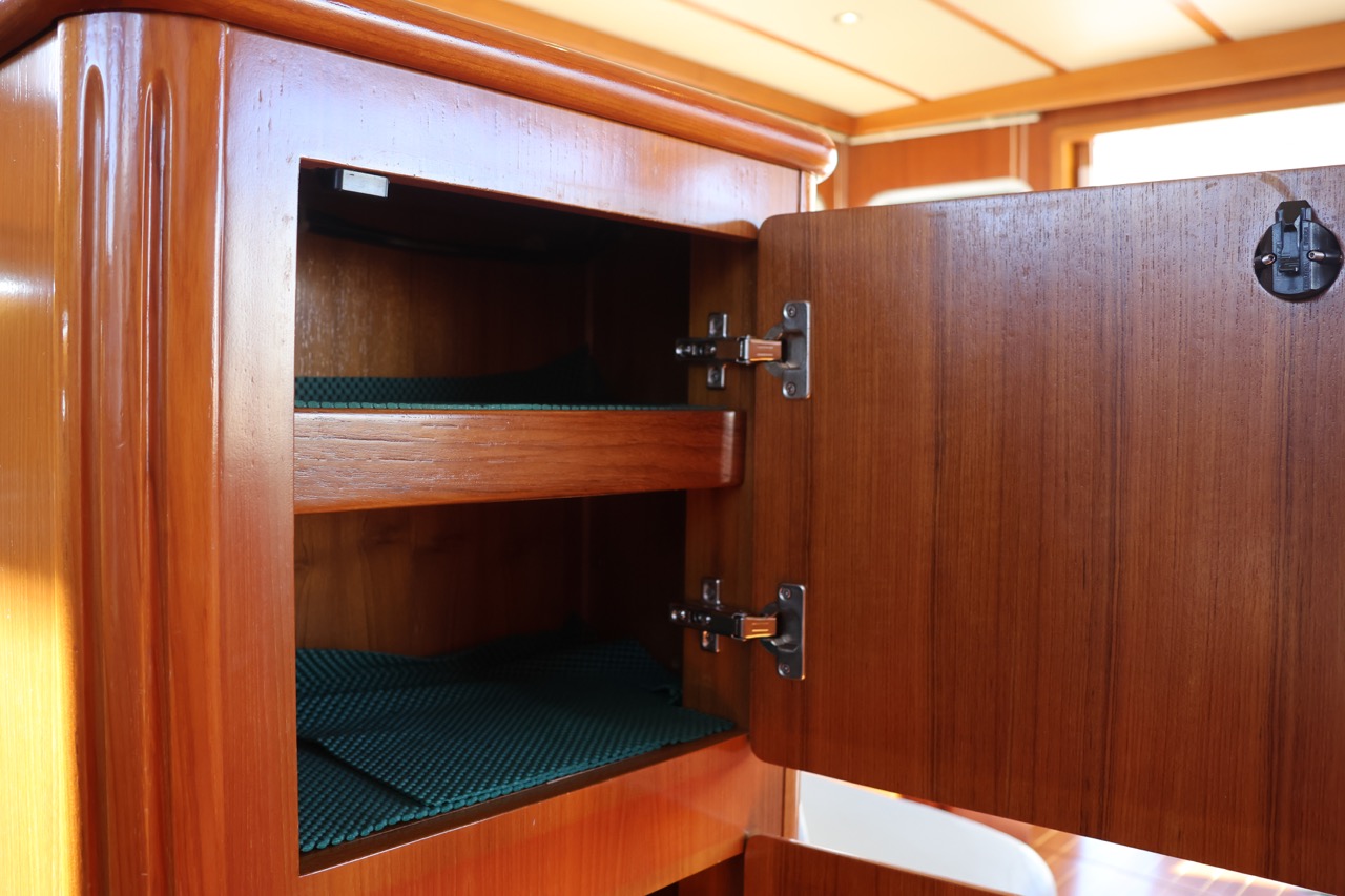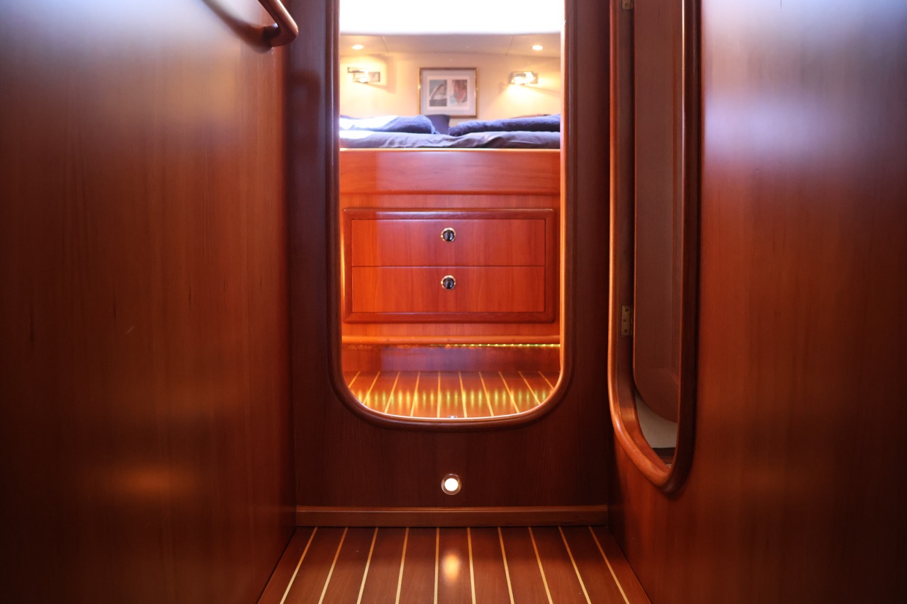 Powered by twin VOLVO PENTA TAMD 74 EDC inboard engines delivering 430 hp each, it offers a cruising speed of 8 knots and a top hull speed of 12 knots — perfect for relaxed, long-distance cruising.