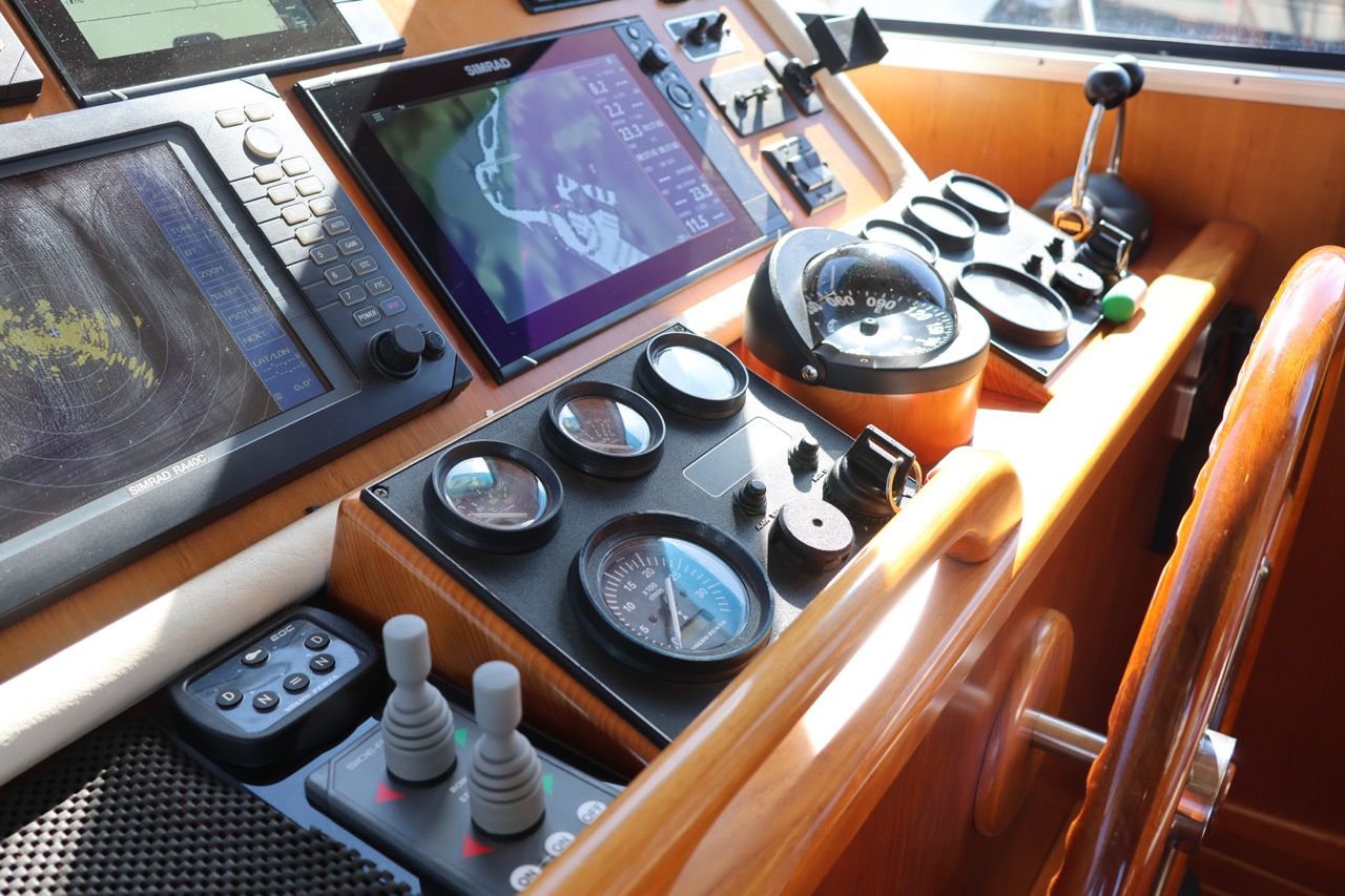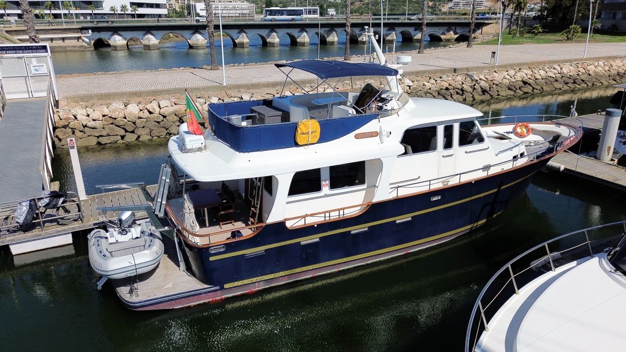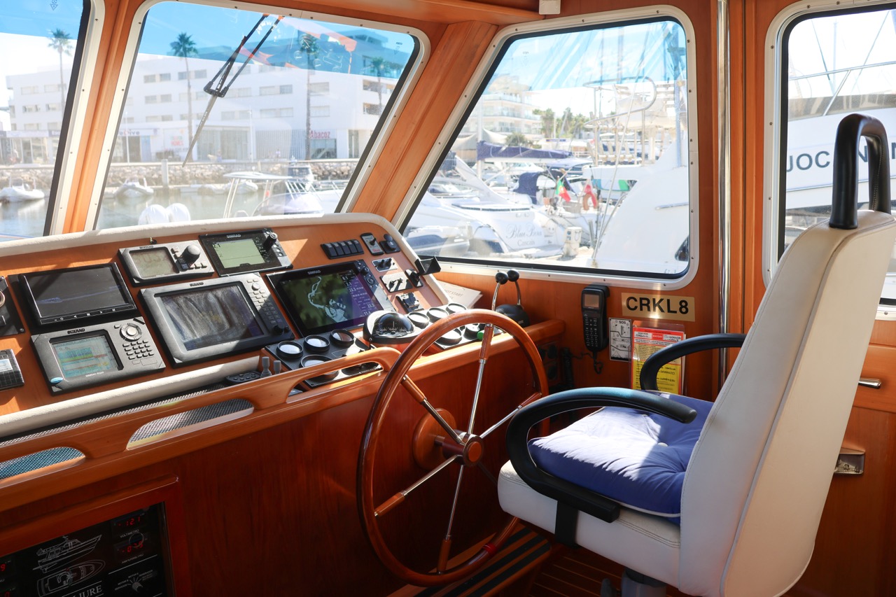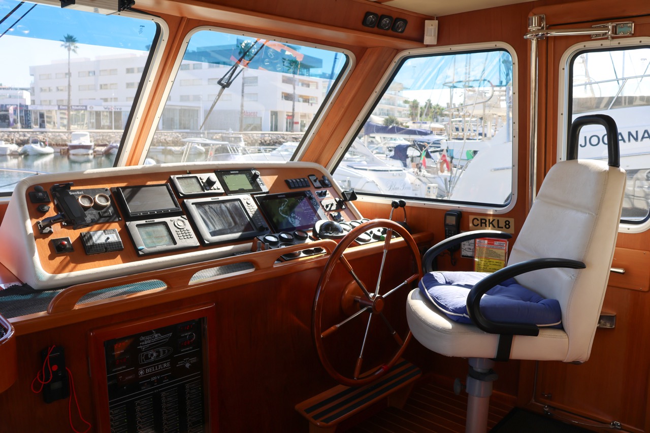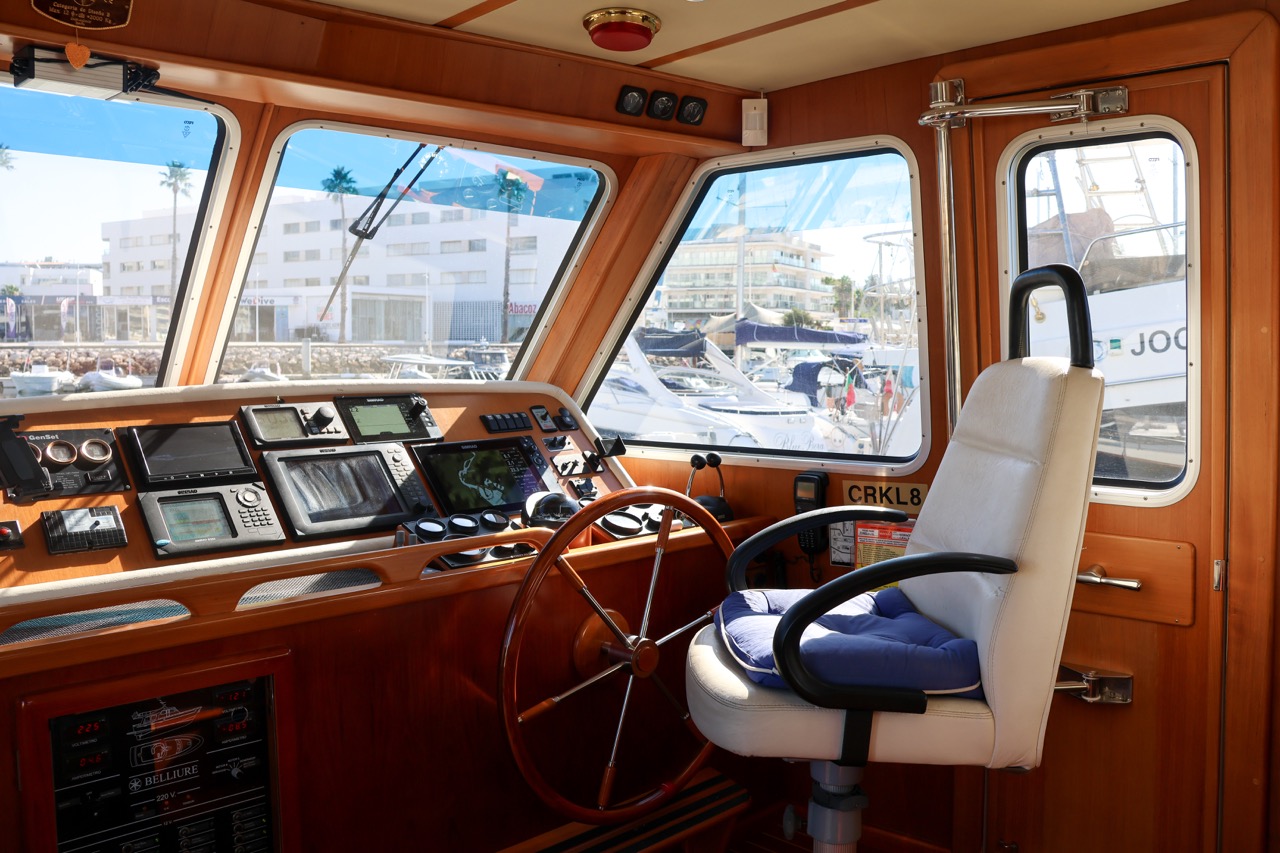 An impressive 2003 trawler measuring 14.7 meters in overall length. This pre-owned vessel features a solid fiberglass displacement hull, ensuring excellent stability and comfort on the water.