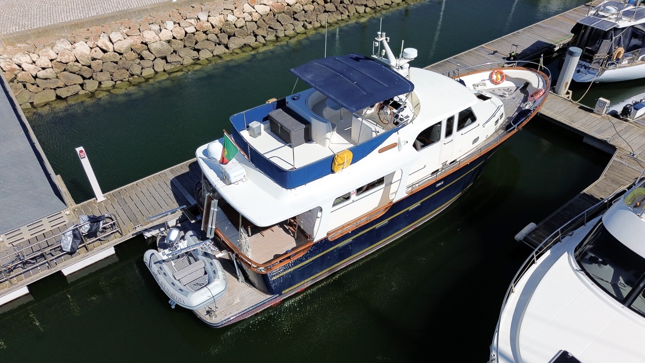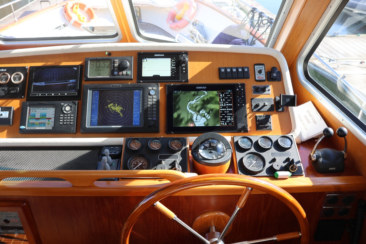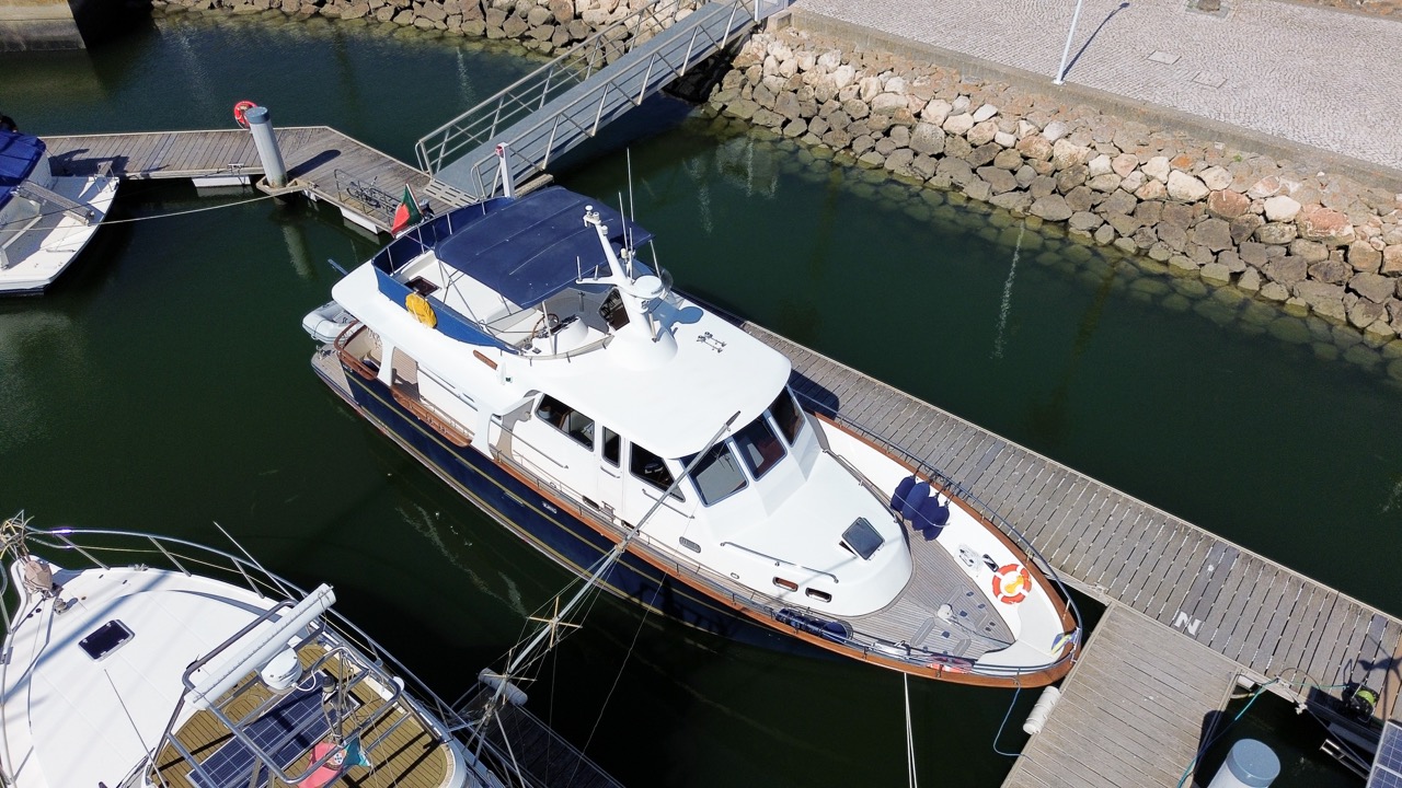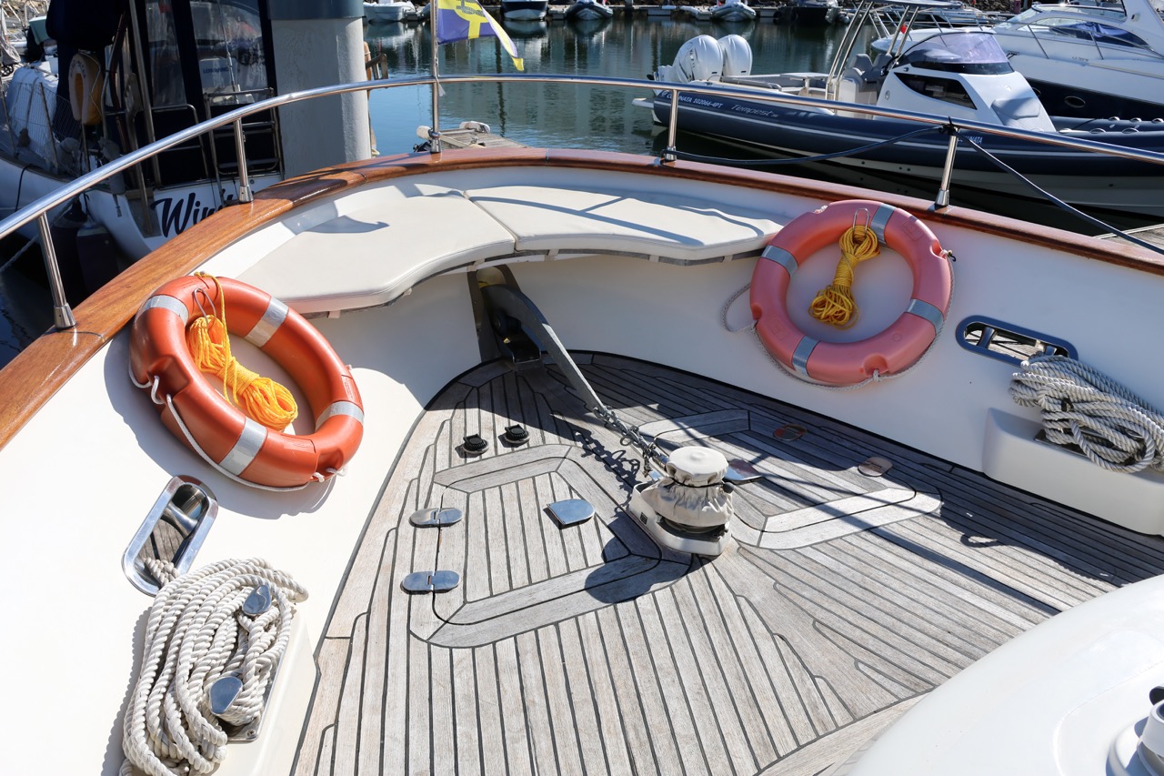 An impressive 2003 trawler measuring 14.7 meters in overall length. This pre-owned vessel features a solid fiberglass displacement hull, ensuring excellent stability and comfort on the water.