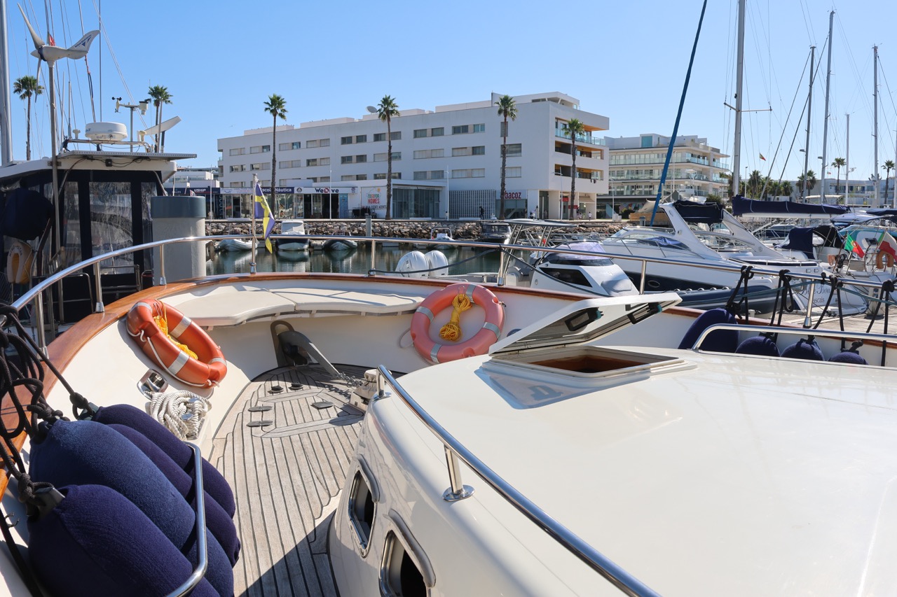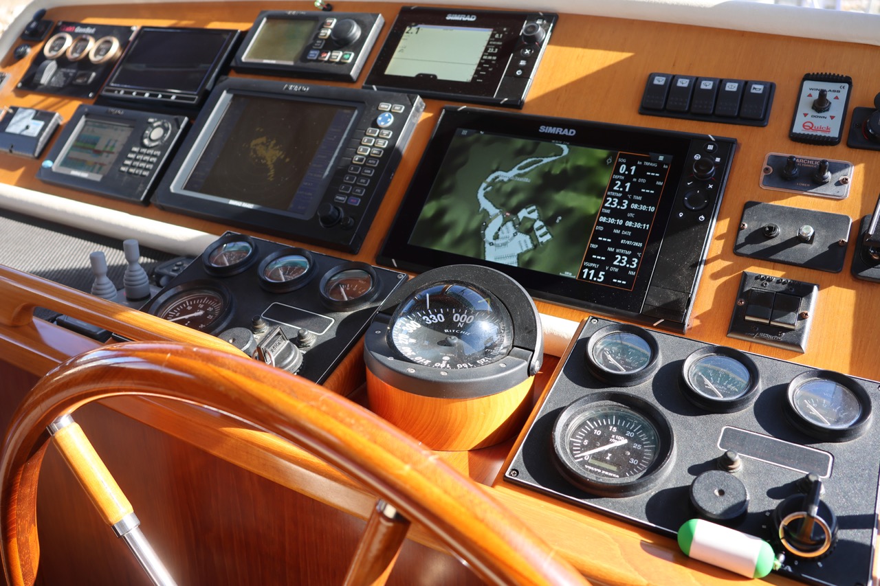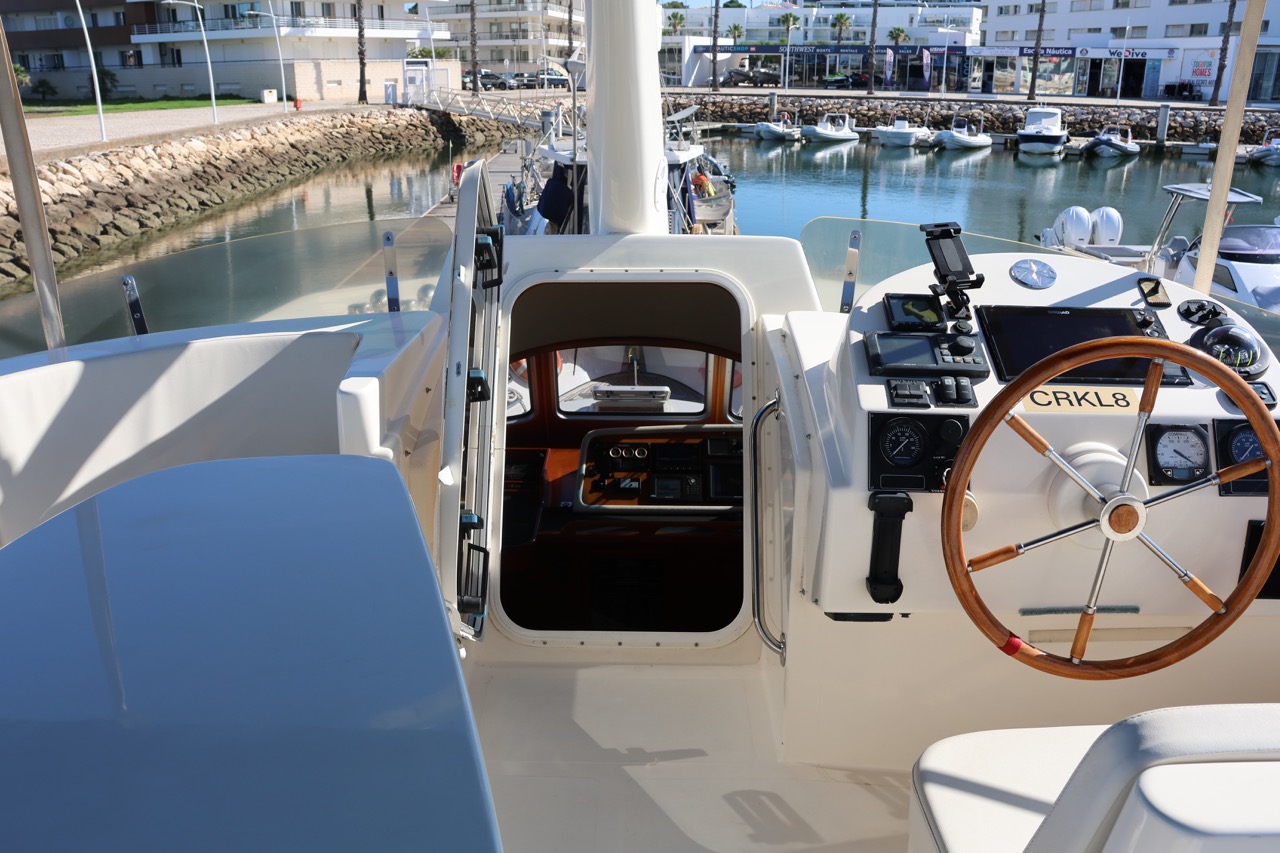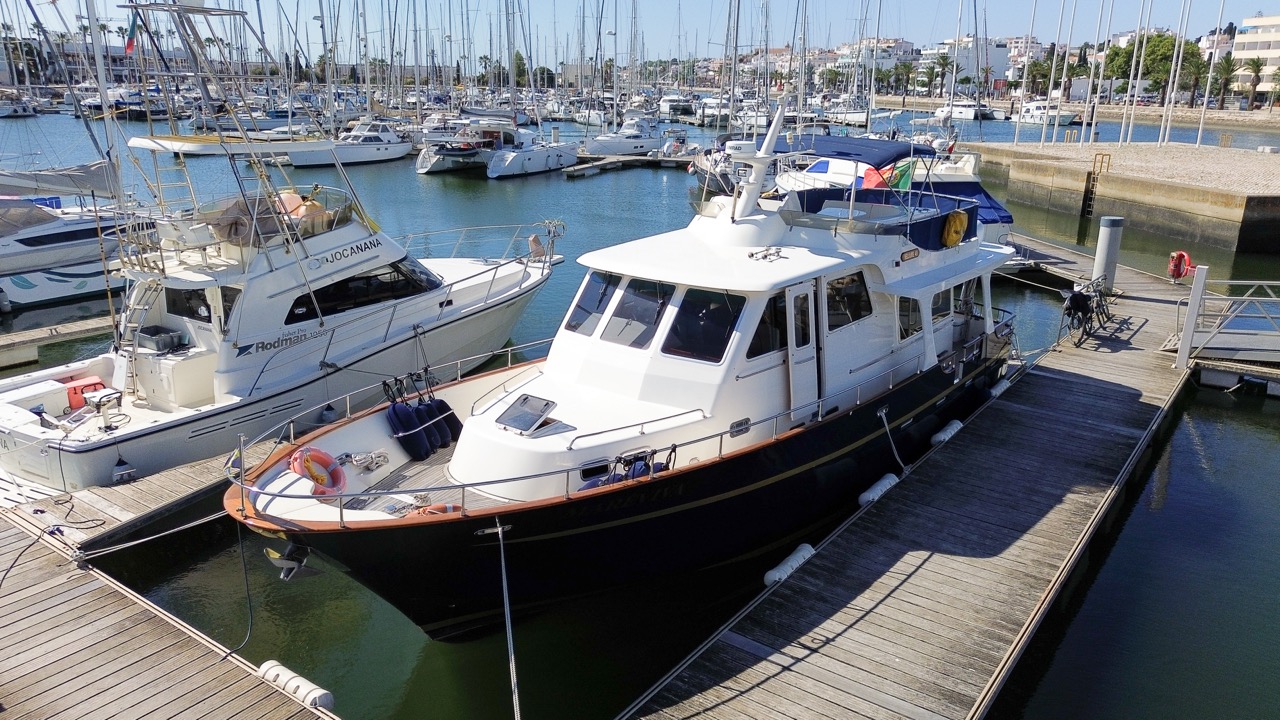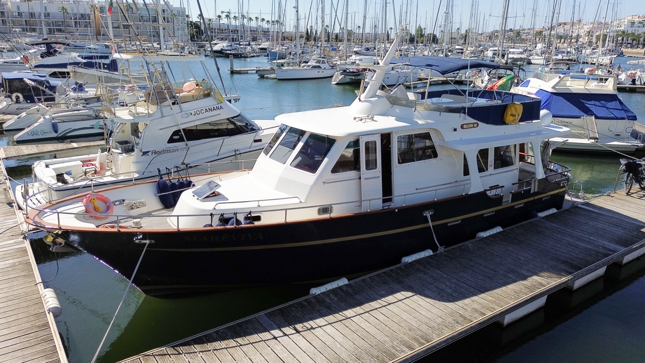 An impressive 2003 trawler measuring 14.7 meters in overall length. This pre-owned vessel features a solid fiberglass displacement hull, ensuring excellent stability and comfort on the water.