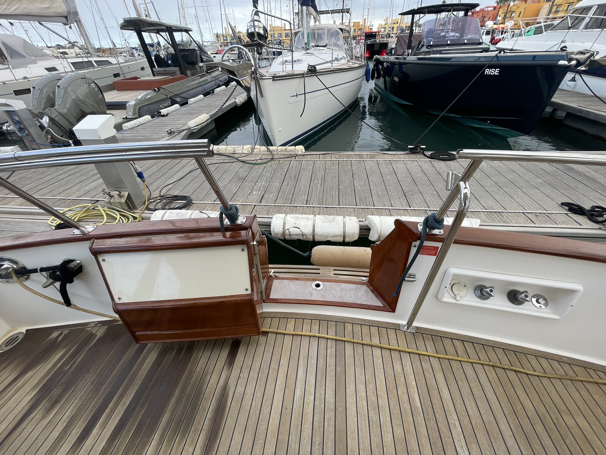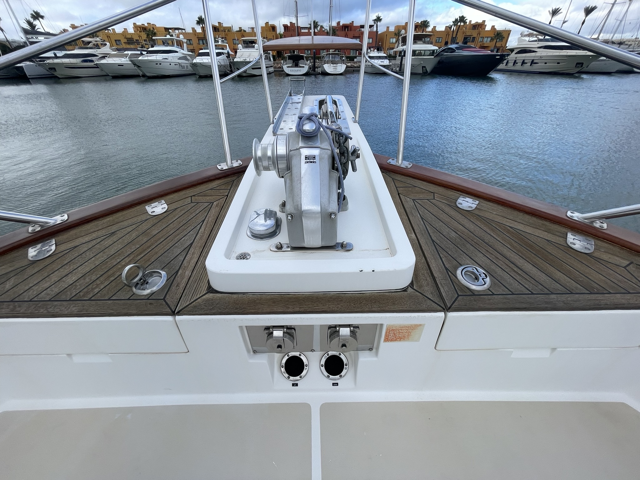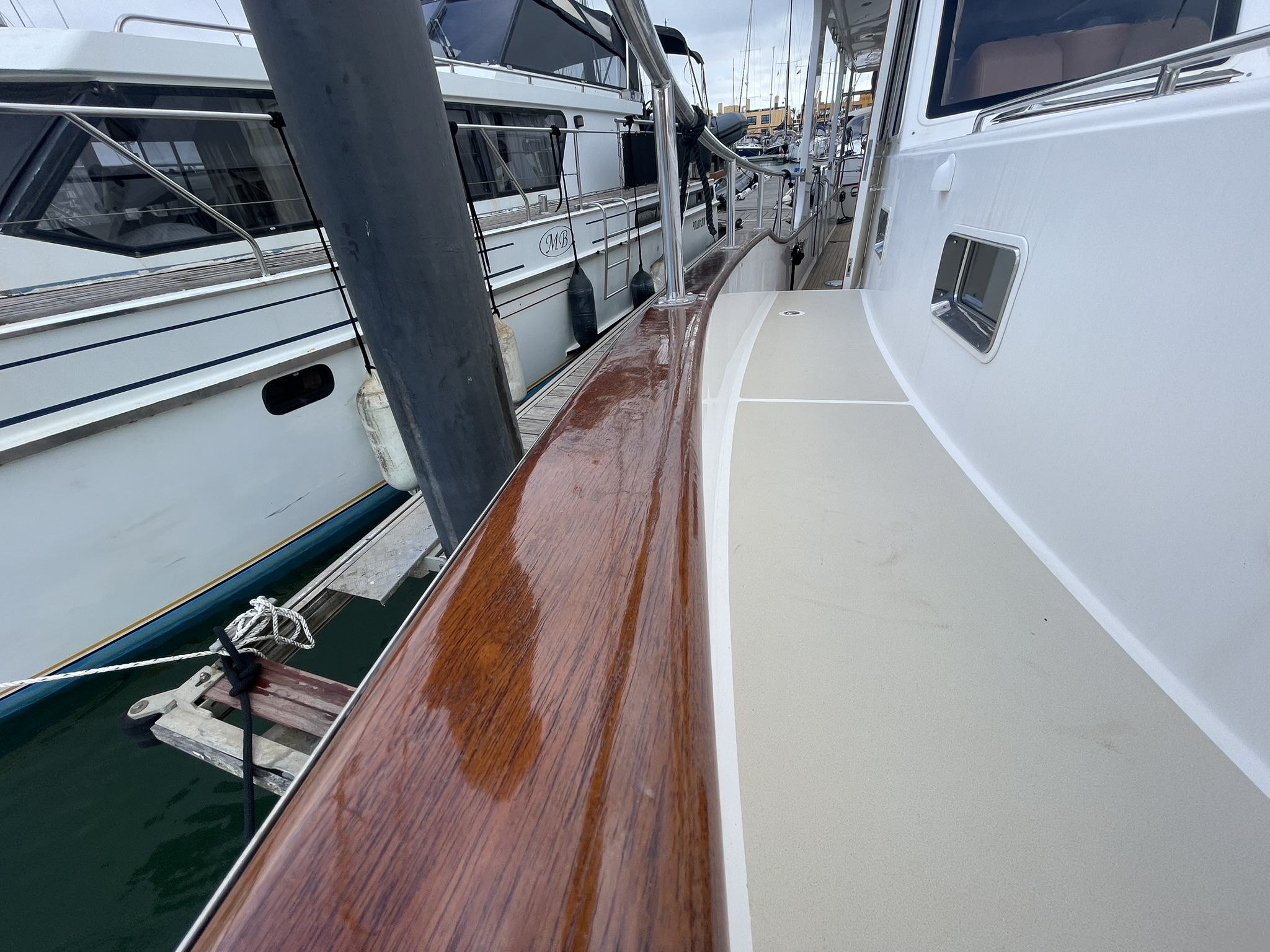 Visually, she is flawless. She has just emerged from the yard with a total hull respray that restores her showroom shine, along with fresh antifouling.