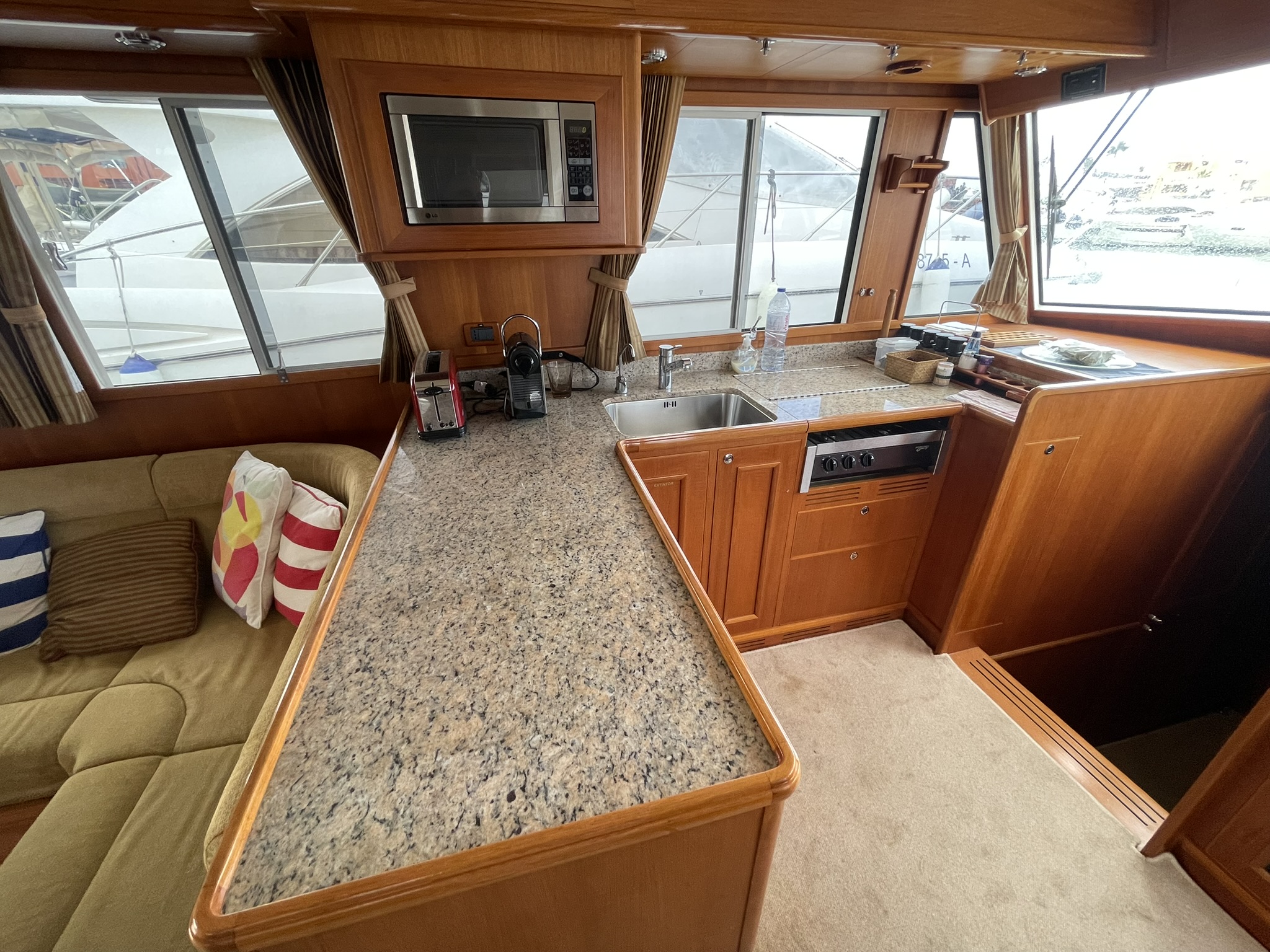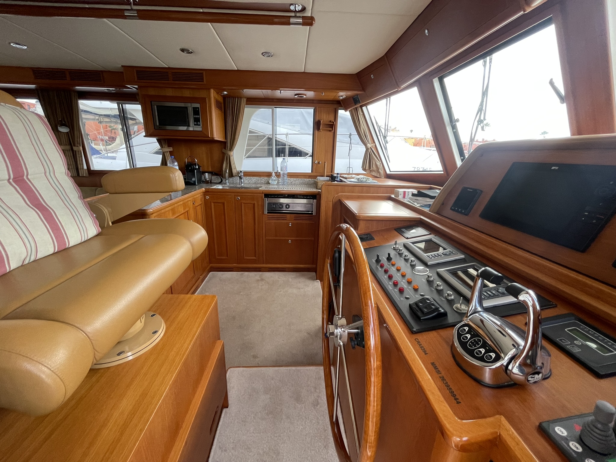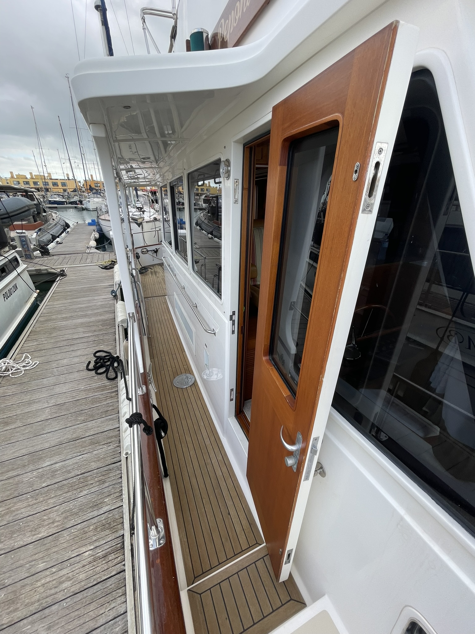 Visually, she is flawless. She has just emerged from the yard with a total hull respray that restores her showroom shine, along with fresh antifouling.